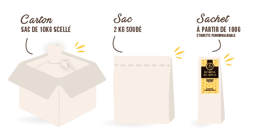 nous vous accompagnons de A à Z pour la fabrication de vos bonbons au miel à façon.